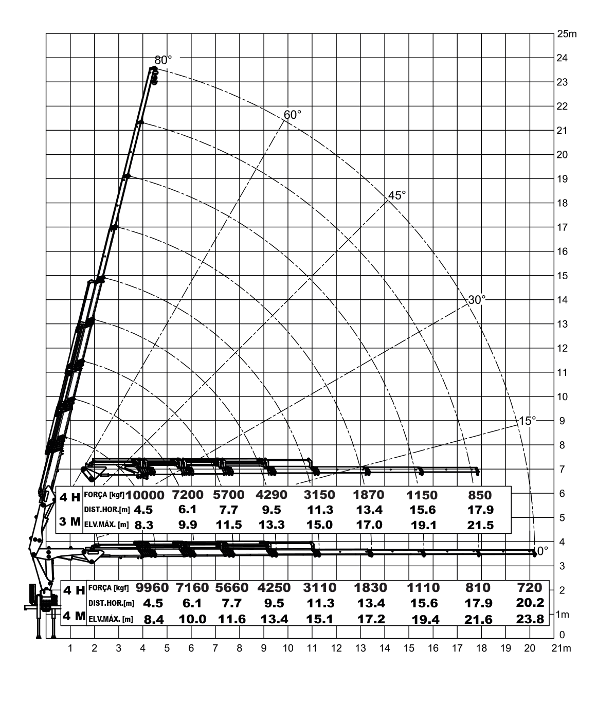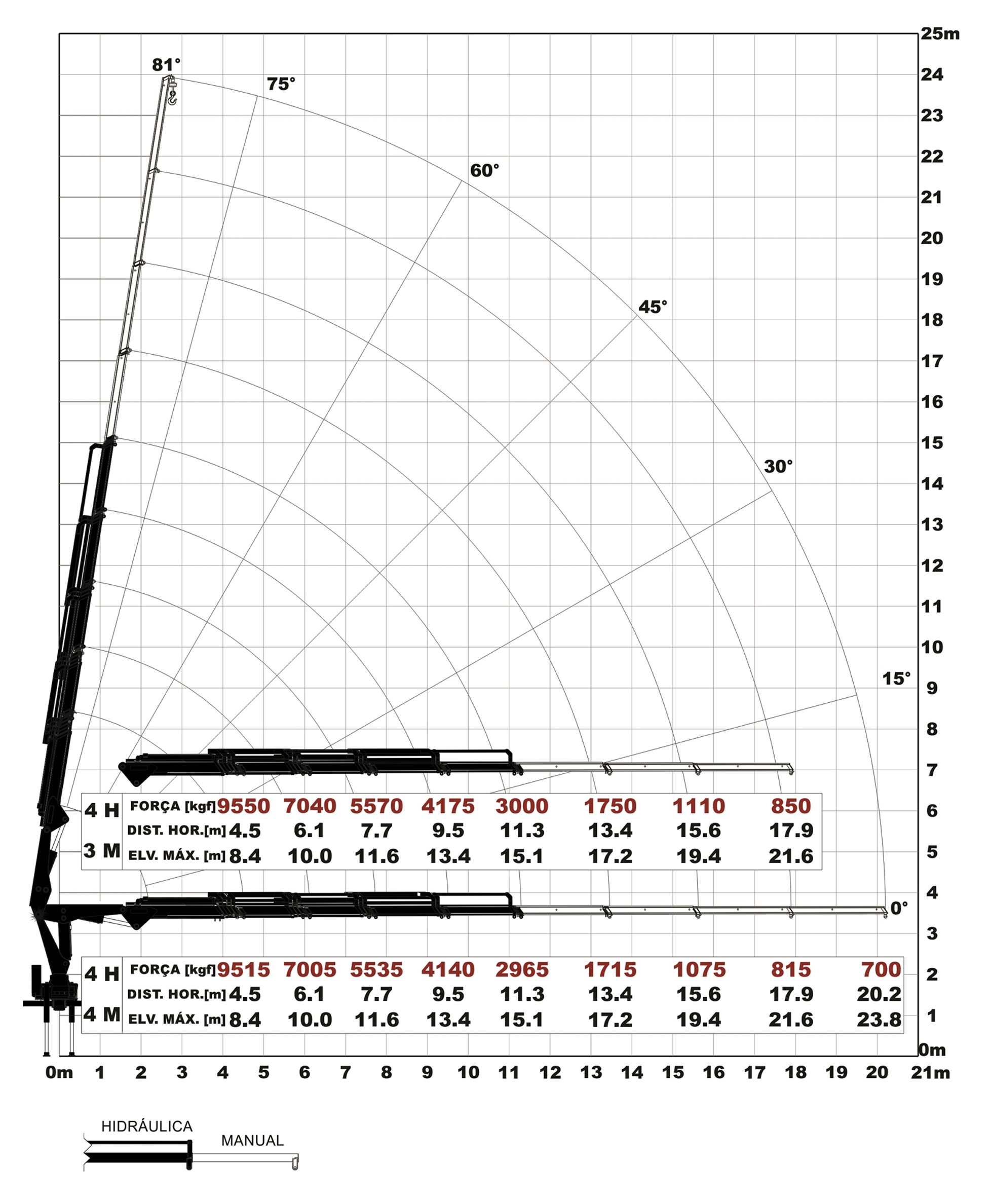 Capacidade Máxima: 9515 kg à 4,5 m